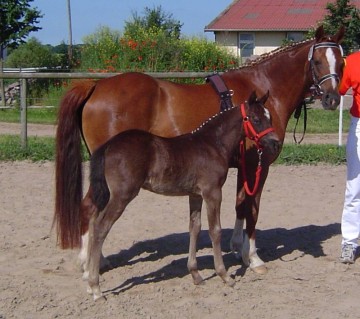 Züchter dieser kleinen Reitponystute, Geboren 1997, ist Detlef Schwolow (Dallgow). 2001 kauften wir sie als Kinderpony.