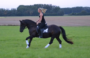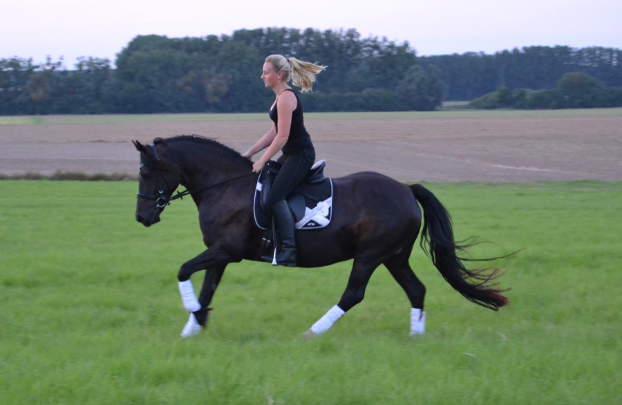 Llaun Addien (Geb.: 2003), gezogen im Llaun-Gestüt (Claudia Gerling) in Schleswig-Holstein, kam als 2-jährige zu uns. Sie gewann 4-jährig die 20-tägige Stutenleistungsprüfung in Neustadt (Dosse) mit einer Wertnote von 8,03 und wurde ein Jahr später zu einer 3 Sterne Staatsprämienstute gekürt.